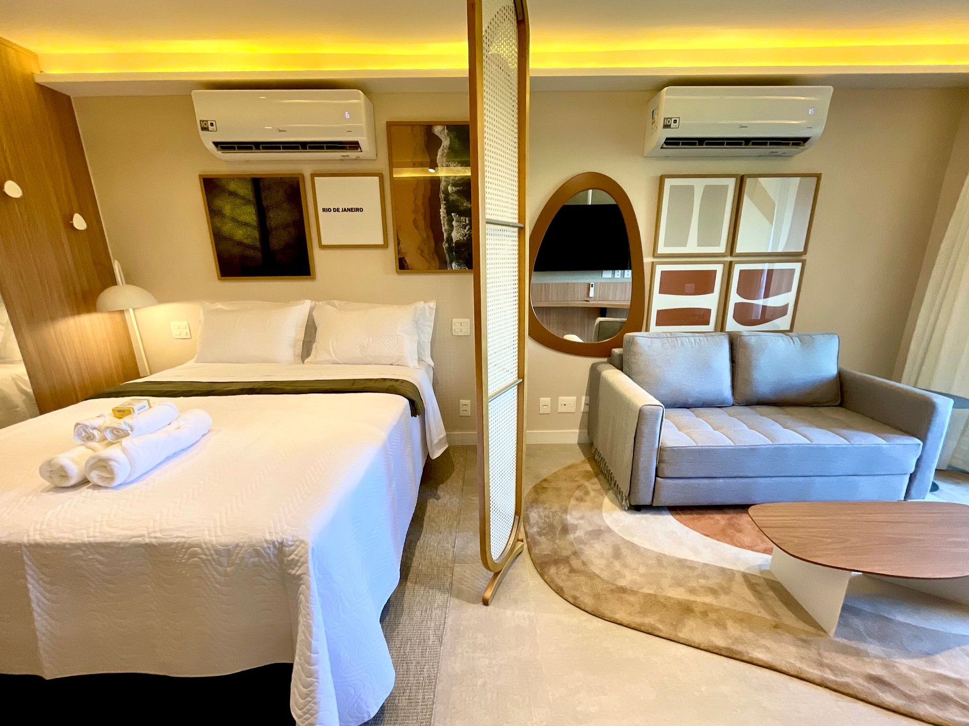 Studio no Leblon completamente reformado, moderno, aconchegante e bem localizado. Ideal para pessoas e famílias que vêm a lazer ou a trabalho e que buscam muito conforto, localização nobre e que possam resolver tudo a pé. Localizado a poucos minutos a pé da praia, da Lagoa, da estação do metrô e próximo a todo comércio, melhores bares e restaurantes, academias e do Shopping Leblon. O Studio conta com piscina, academia, lavanderia e portaria 24h, além de uma vaga de garagem gratuita.