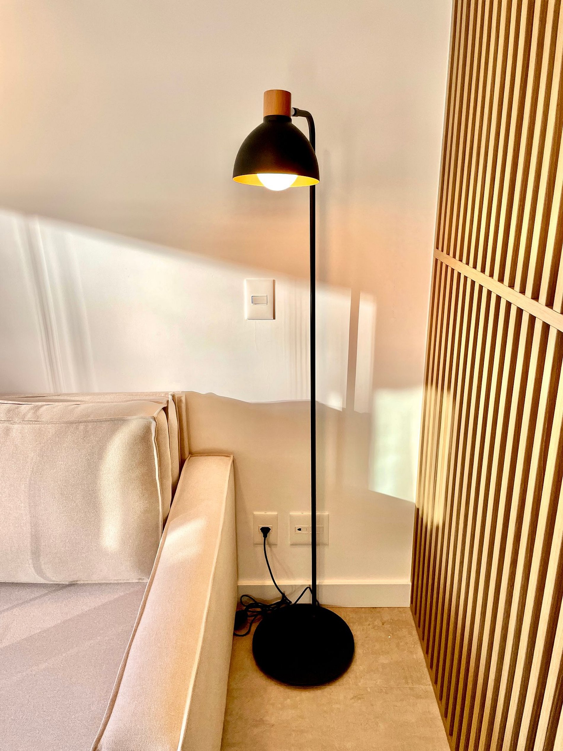 Quarto/sala super agradável com sofá, cama de casal, armários, aparelhos de ar condicionado, Smart TV, cortina blackout, mesa de jantar, diversas tomadas, além de contar com uma varanda super charmosa. Internet de alta velocidade. Banheiro todo completo e com chuveiro com boa pressão. Cozinha equipada com geladeira, cooktop, microondas, forno com Airfryer, filtro de água e diversos utensílios. Oferece também outras comodidades, como berço portátil*, secador de cabelo, tábua e ferro de passar roupa e kit de amenities (shampoo, condicionador e sabonete).