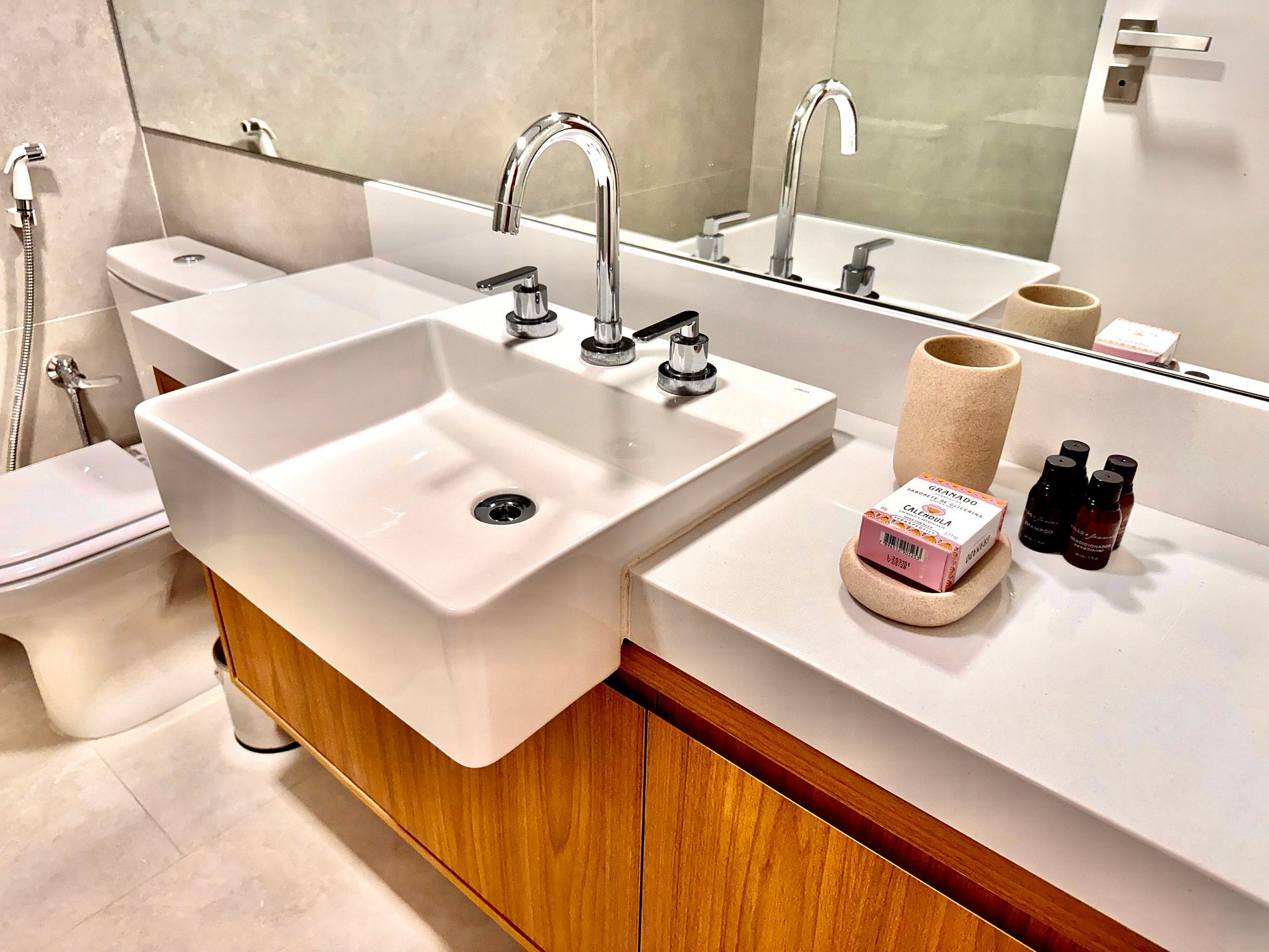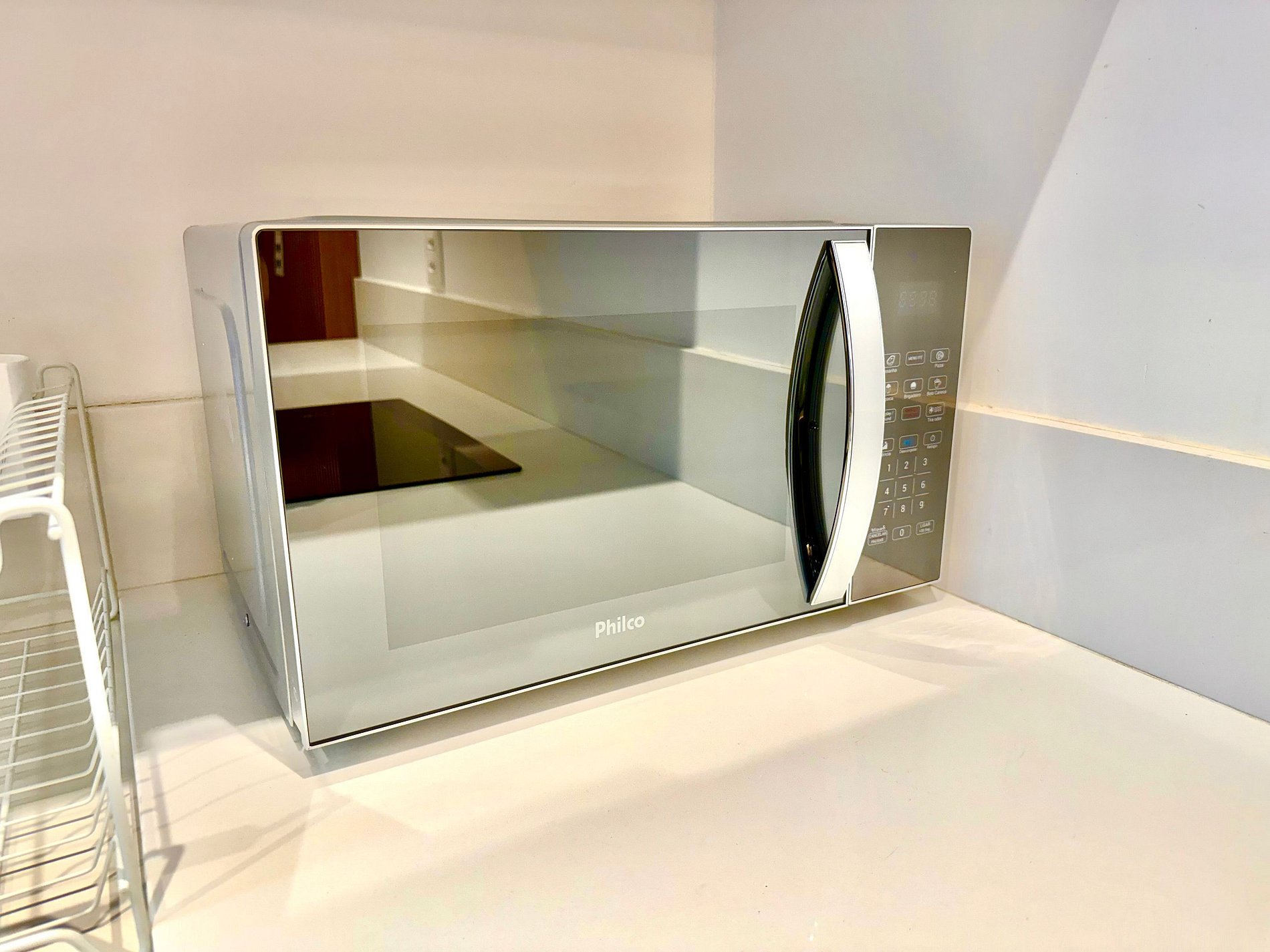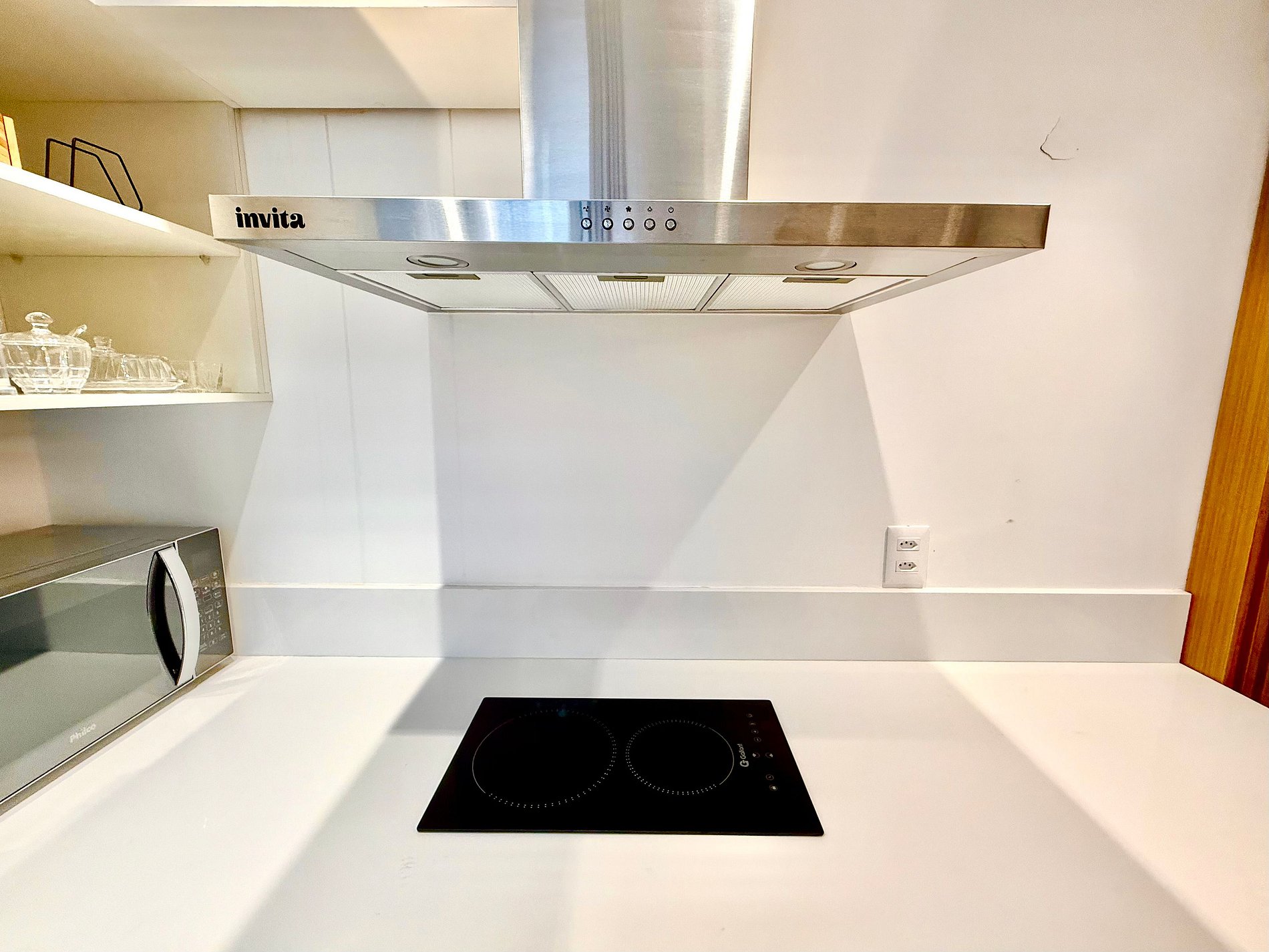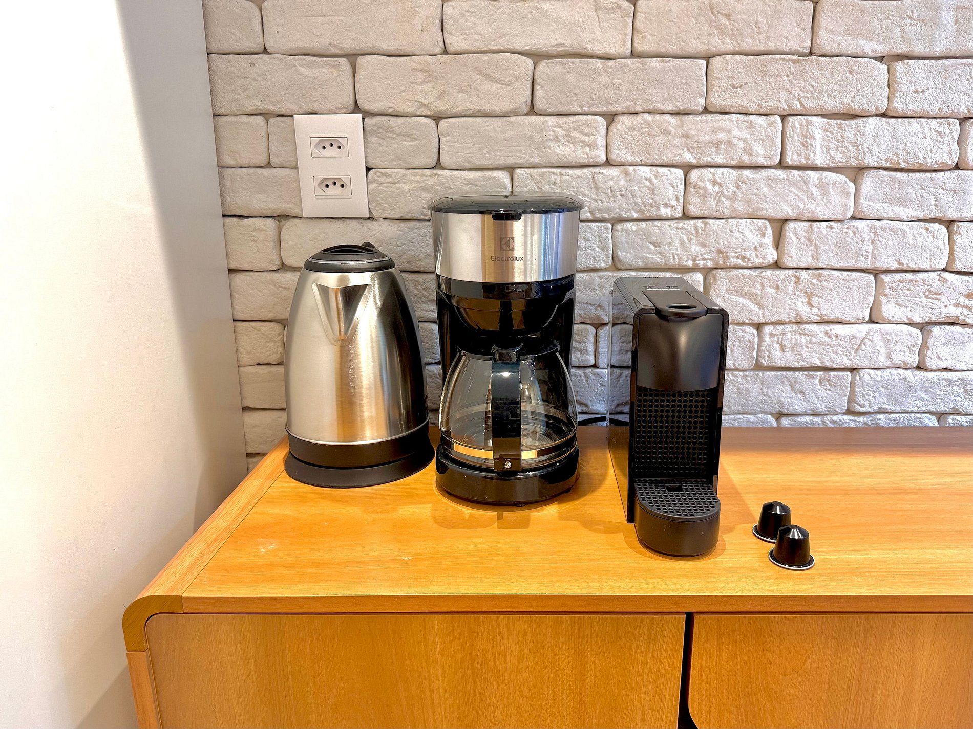 Studio super agradável, espaçoso, silencioso, com cama queen confortável, sofá-cama, poltrona, diversos armários, 2 aparelhos de ar condicionado potentes, 2 Smart TV´s de 50 polegadas, mesa de jantar e diversas tomadas. Internet de alta velocidade. Banheiro todo completo e com chuveiro com boa pressão. Cozinha equipada com geladeira, cooktop, microondas, cafeteira Nespresso, cafeteira elétrica, chaleira elétrica, Airfryer e diversos utensílios. Oferece também outras comodidades, como berço portátil*, secador de cabelo, ferro de passar roupa e kit de amenities (shampoo, condicionador e sabonete).