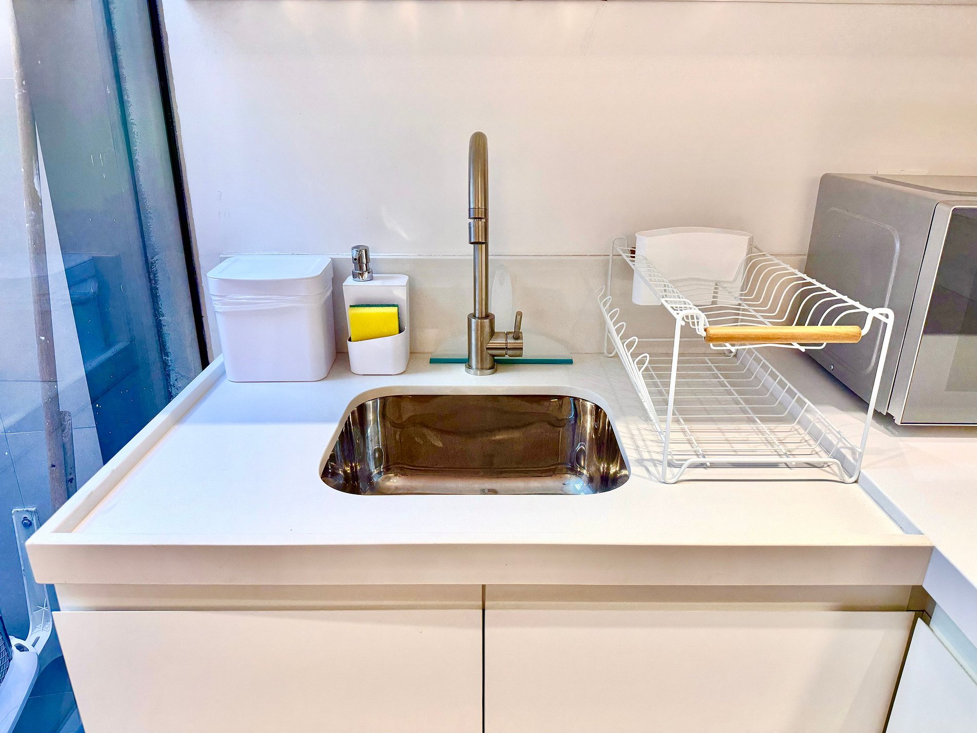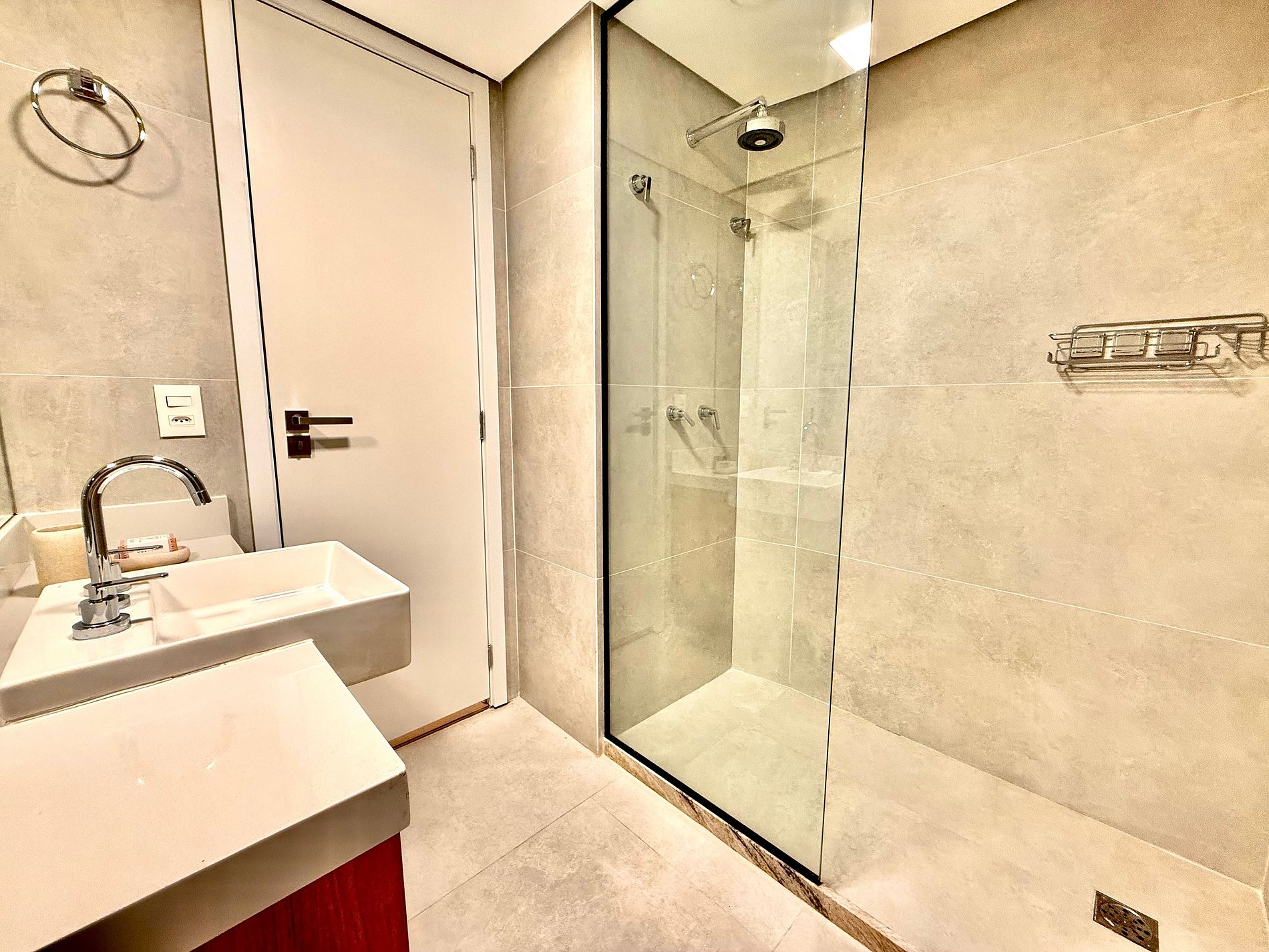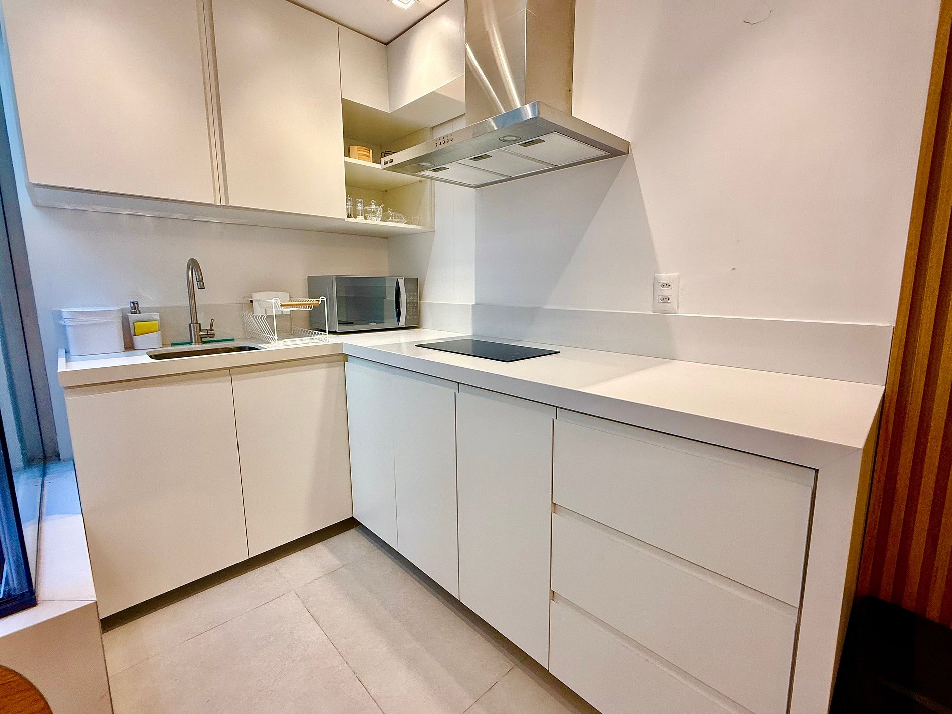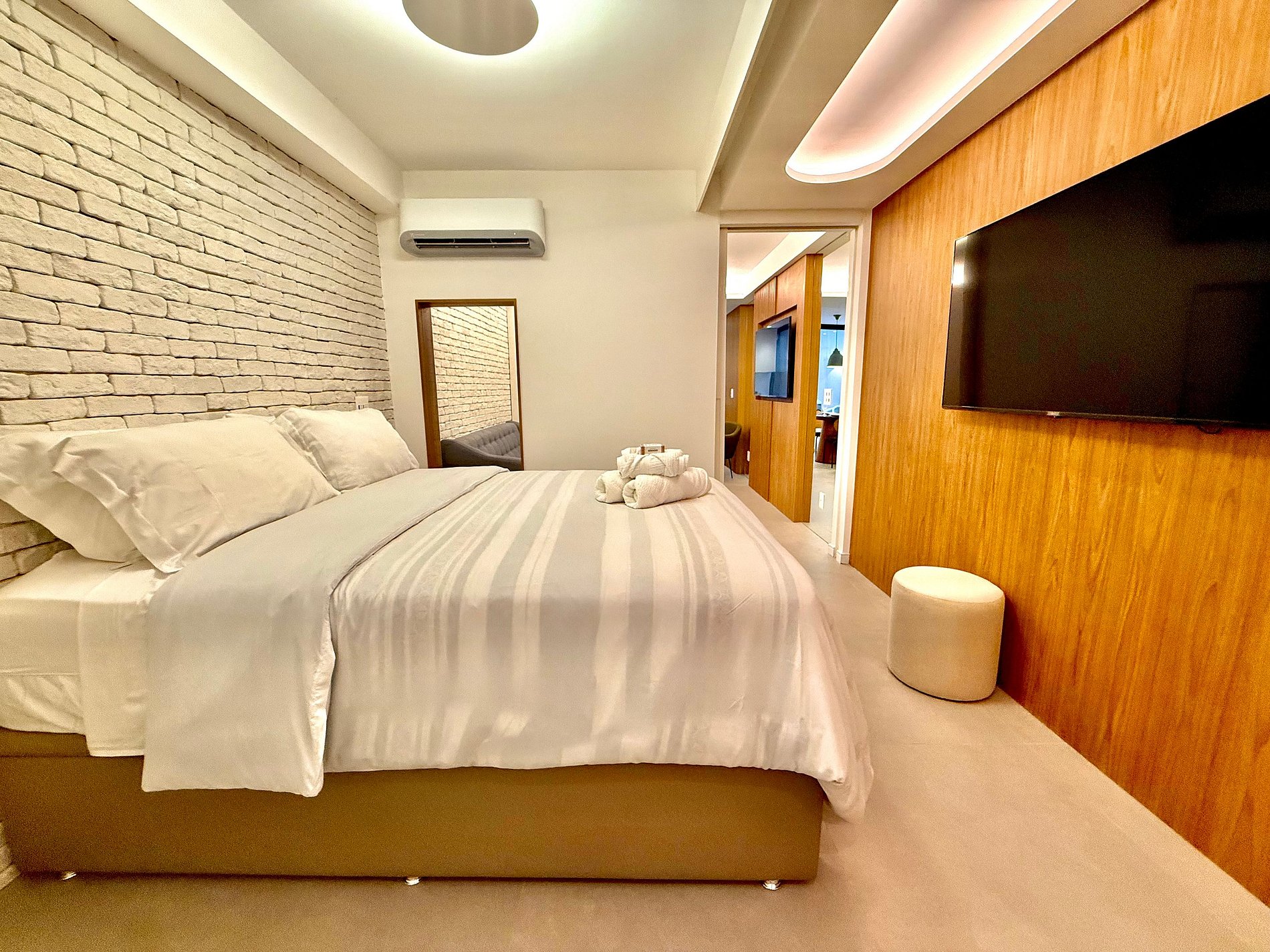 Studio super agradável, espaçoso, silencioso, com cama queen confortável, sofá-cama, poltrona, diversos armários, 2 aparelhos de ar condicionado potentes, 2 Smart TV´s de 50 polegadas, mesa de jantar e diversas tomadas. Internet de alta velocidade. Banheiro todo completo e com chuveiro com boa pressão. Cozinha equipada com geladeira, cooktop, microondas, cafeteira Nespresso, cafeteira elétrica, chaleira elétrica, Airfryer e diversos utensílios. Oferece também outras comodidades, como berço portátil*, secador de cabelo, ferro de passar roupa e kit de amenities (shampoo, condicionador e sabonete).